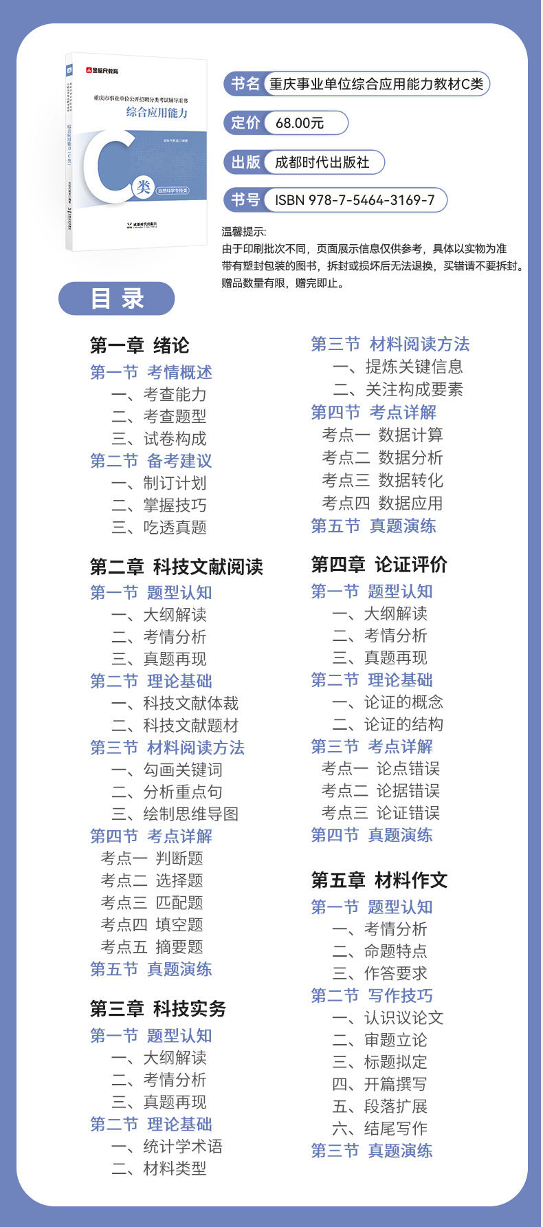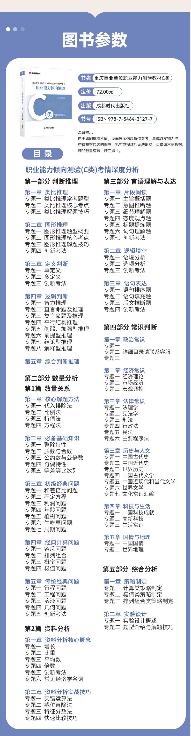 重庆【职测+综应】C类 教材+重庆真题+职测3000题+常识判断 高分进阶1001题