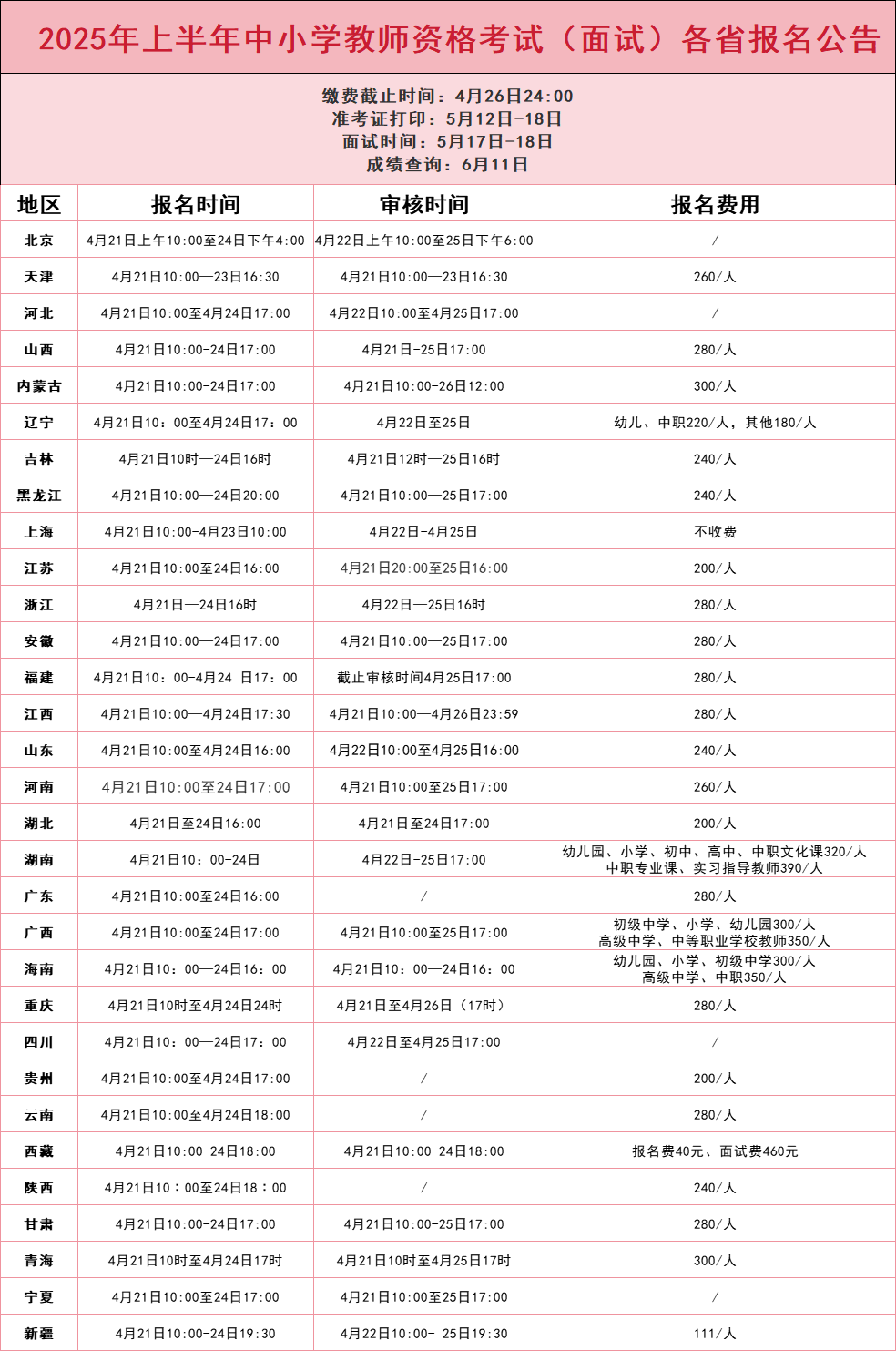 附件:2025年上半年中小学教师资格考试(面试)各省报名公告